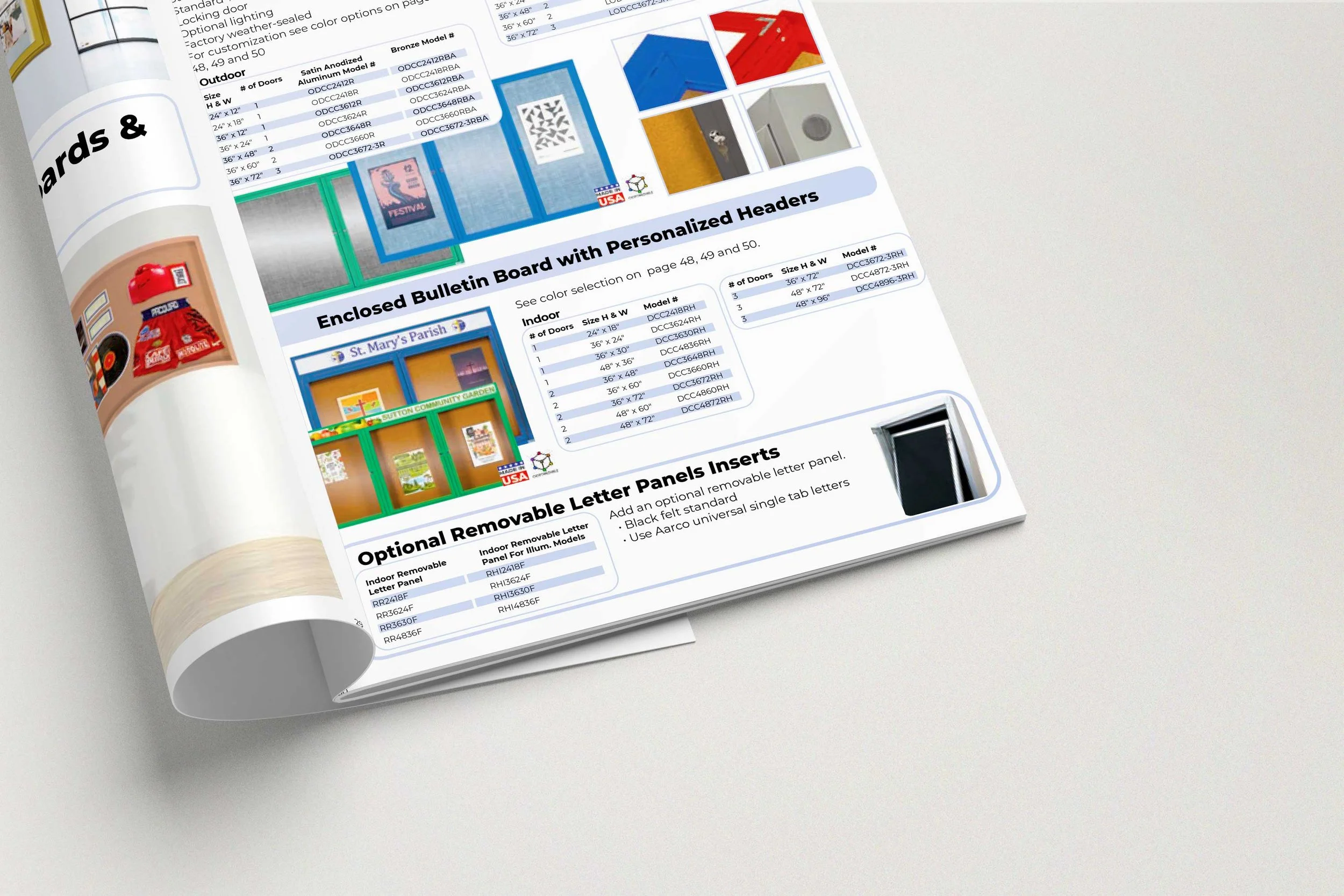 I execute the art direction, photography, page layout, and production for Aarco’s company catalogs. The catalogs are used as marketing tools, and since I was hired, sales have increased 25% year over year, which in no small part led to the company’s most profitable year in 50 years of business.