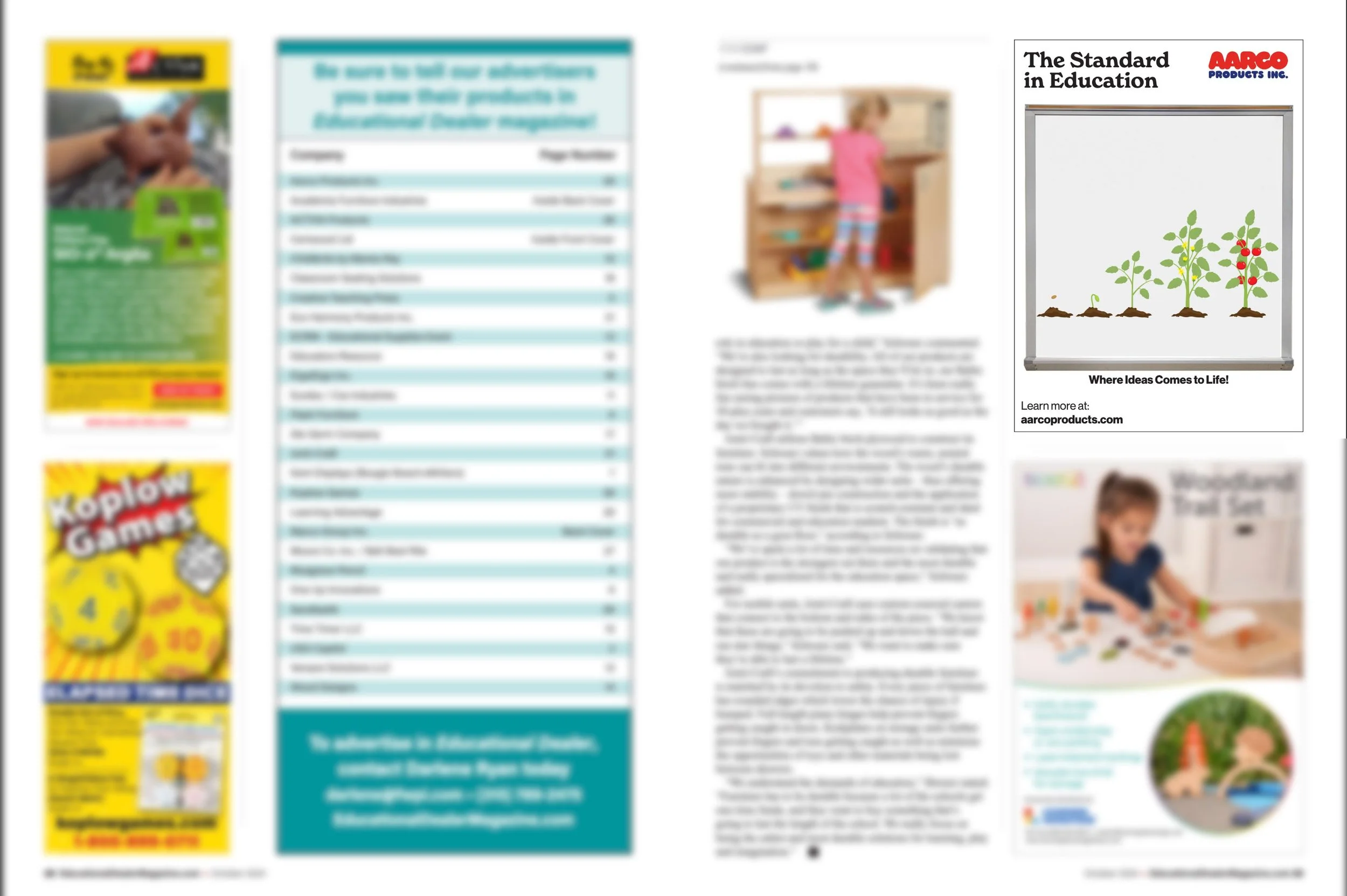 Over the past four years, my advertising art skills have translated into countless ad campaigns that promoted positive growth in sales at Aarco. The advertising I worked on existed in both the print and digital spaces for Educational Dealer Magazine and Christian School Products Magazine, as well as for outside sales companies like Cordien Inc. and Moldow Associates.
